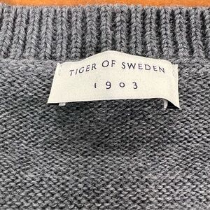 Gray crewneck sweater by Tiger of Sweden. 100% wool with heavy weight knit.