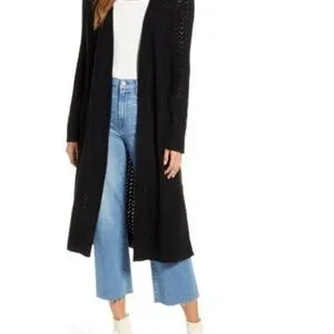 Rachel Parcell Black Knit Delicate Duster Cardigan, size Medium