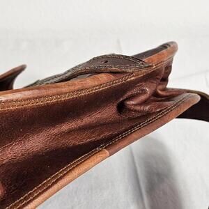 Lightly used. Bag has one cosmetic issue. Rear leather has a dent from being stored on top of its own buckle. It is not a hole. Interior very clean. Leather is not even broken in yet. Please see all photos for condition specifics.