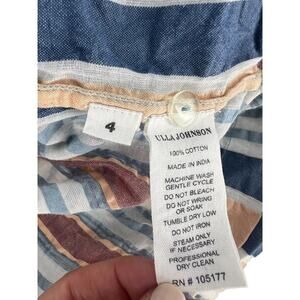 Ulla Johnson Martim Shorts in Sky, crafted in lightweight striped cotton seersucker for a breezy, effortless summer style. Designed in shades of blue, white, coral, and red, these paperbag shorts feature a flattering high-rise silhouette, adjustable self-tie bow waist, and a relaxed leg fit. Known for their easy sophistication, the Martim shorts are versatile enough to pair with the matching Adana Top for a chic set or styled with a simple blouse or tank for casual wear. Perfect for warm weather, vacation outfits, resort wear, and elevated day-to-day looks.