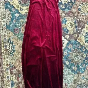 Romeo and Juliet burgundy velvet maxi wedding guest dress