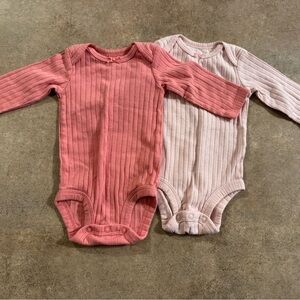 2 PACK- Ribbed Long Sleeve Baby Onesies - Pink