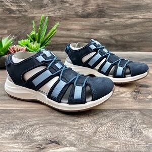 NIB Clarks Solan Sail Fisherman Sandal Navy Combi Suede