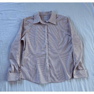 Brooks Brothers Petite Fitted Button Down Shirt, Red/White Stripe, Size 10P