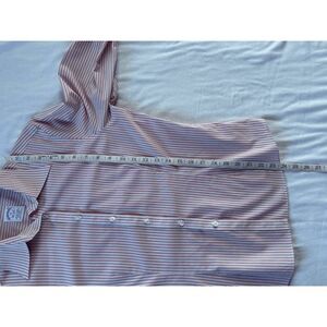 This is a very nice button down with no stains or holes. All the buttons in the front are firmly attached but the buttons on the sleeves are loose and might need fixed. Other than that this shirt is very nice. I have measurements in the pictures.