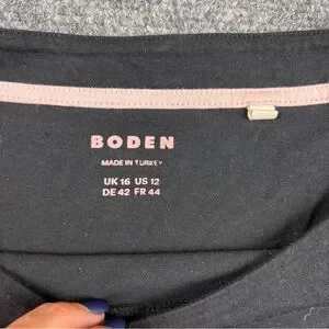 BODEN Women’s Black Boat neck T-Shirt Short Sleeved size: 12