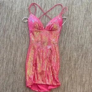 Shine bright in this stunning pink sequin dress. Perfect for a night out, this dress features a strappy design that adds elegance and style. Brand new no tag