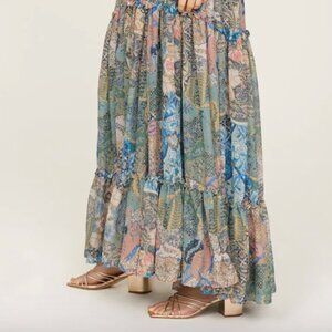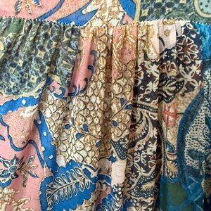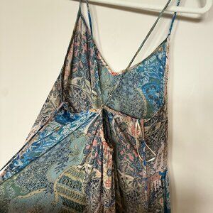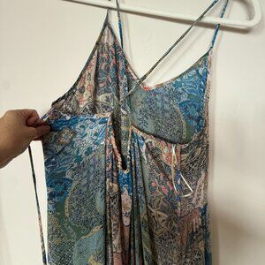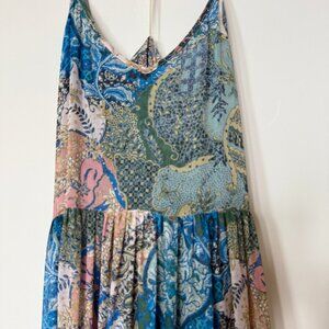 Multicolored printed chiffon (100% Polyester). Maxi. Sleeveless. V-neck. Pull on. 58" from shoulder to hemline. Made in the USA of imported fabric.