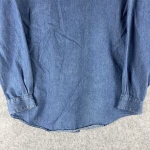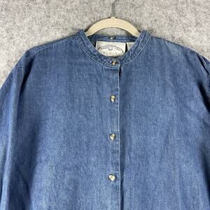 Vintage 90s Eagles Eye Top Womens XL Blue Denim Button Up Hong Kong Cotton