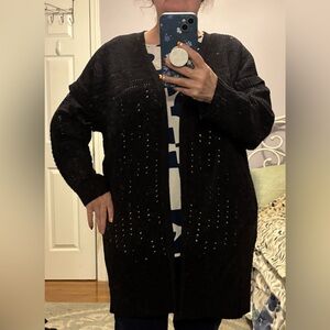 Terra & Sky Black Open-Knit Cardigan