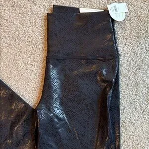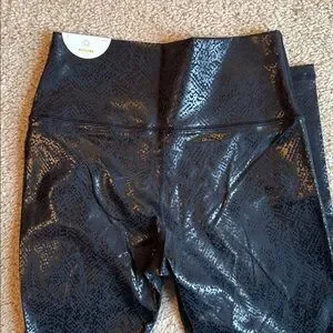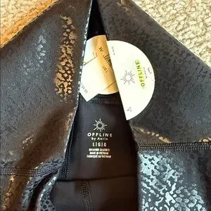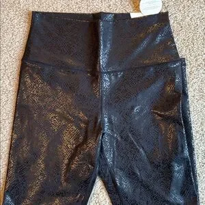 Aerie black reptile snake leggings high rise offline pants size large pull on