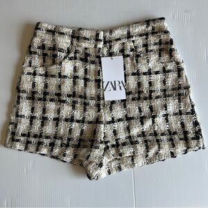 ZARA TEXTURED WEAVE PLAID SHORTS TAUPE BROWN | 2214/623 SIZE M
