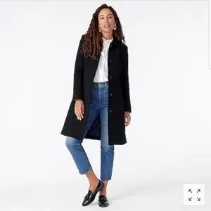 Brand new with tags. This coat is sold out online and is one of J. Crew’s most signature black jackets. Size 0 and an absolute classic, staple for closets. Retails for $398. This is Crew’s retail line and not factory.