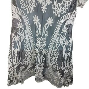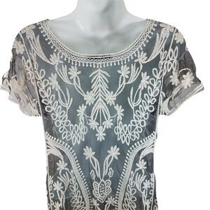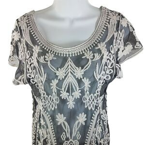 Dulcie Black Ivory Embroidered Mesh Top Sz M | Sheer Lace Boho Blouse