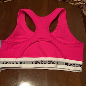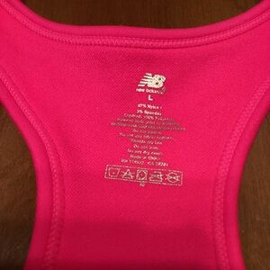 Ladies pink athletic top from New Balance. Crisscross back and elastic band. Nylon/spandex. NWT