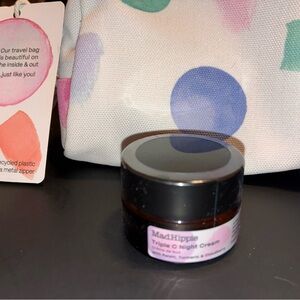 This set includes Vitamin C Serum, Triple C Night Cream, and Super A Serum, all housed in a colorful travel bag. Perfect for on-the-go skincare.