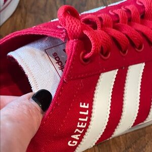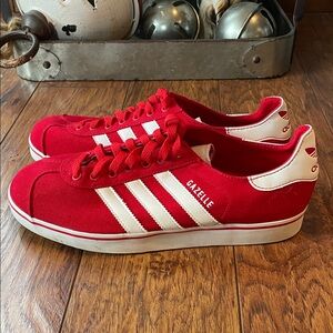 Adidas Gazelle Men's Red and White Striped Sneakers Size 8.5 Excellent Condition