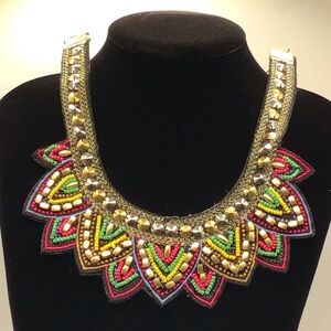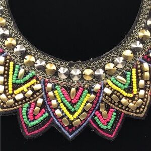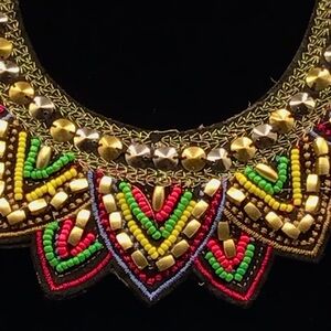 women’s Beaded Colar Necklace to put around shirts or sweaters to add a pop of colour to your outfit. The back of the Colar Necklace is fabric. Super light.