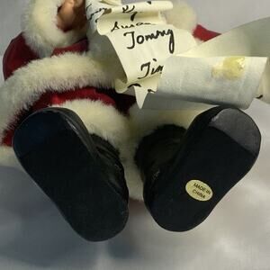 Santa Clause Making His List Fabric Mache Resin Fur Trimmed 10" Tabletop Free Standing Figurine