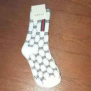 Elevate your style with these Fashion designer white patterned men's socks. Featuring the iconic design, these socks offer both comfort and luxury.