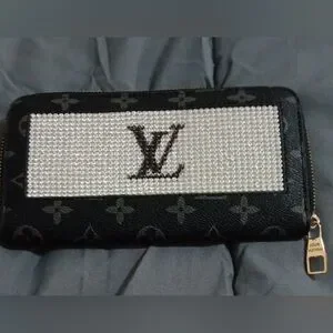 Chic wallet with monogram design. Black and white color scheme. Not LV