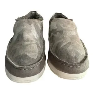 Sperry Womens Moc Sider Olive Faux Fur Lined Slip On Shoe Size 7.5 Camo Style