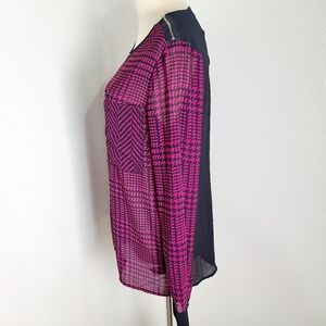 MICHAEL Michael Kors Pink & Black Houndstooth Zip-Front Blouse, Size Medium