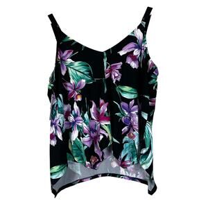 NWT Lilac & London Tank Top Womens 1X Black Tropical Floral V-Neck Hawaiian