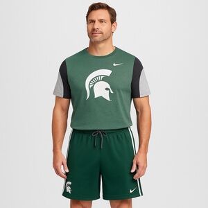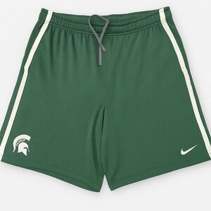 Nike MSU shorts, Michigan State mesh shorts, men’s XXL Nike athletic shorts, green gym shorts, Spartans team apparel, NCAA fan gear, breathable workout shorts, lined Nike mesh shorts