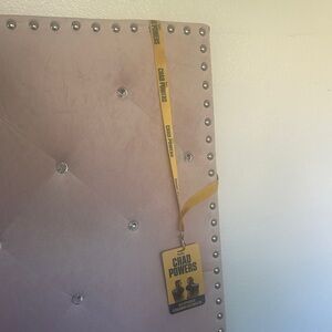 Hulu promotional lanyard featuring the one and only Chad Powers. Yellow and blue design. Perfect addition for Halloween costume.