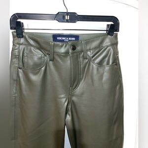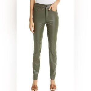 New! Veronica Beard Debbie Skinny Faux Leather Jeans in Loden Olive Green 🌿sz 26