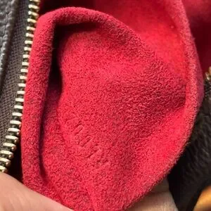 This pre-owned pouch is in good condition, showing signs of use such as rubbing and slight loss of shape on the surface. the metal fittings have scratches and slight paint loss. Inside, there is slight rubbing, and the corners show some rubbing as well.