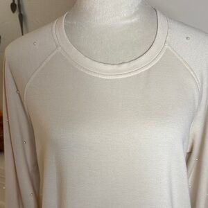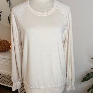Crown & Ivy Soft Cream Women's Hoodie with Accented Pearl Sleeves