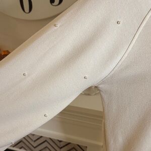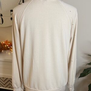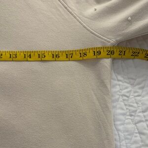 Soft cream hoodie with delicate pearl accents. Perfect for casual wear.