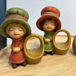 Vintage 70s Holly Hobbie napkin holders 4” tall hand painted girls with baskets