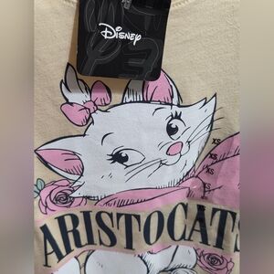 Adorable Disney Aristocats crop top with a cute cat design. Soft off yellow fabric with pink accents.
