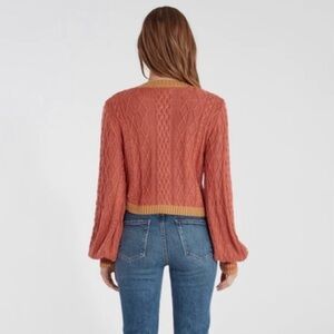 For Love & Lemons Sierra Asymmetrical Cable Knit Cardigan,Large Rust and Mustard