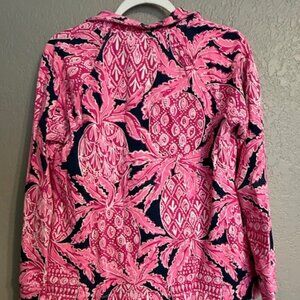 Lilly Pulitzer Pineapple Print Half-Zip Hoodie Pullover – Size M Pink/Navy Resor
