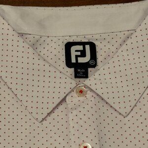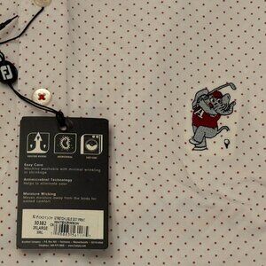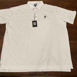 Brand new with tags. Exclusive FootJoy polo from the Swinging Elephant Club, part of the Alabama Golf Booster program. White with red dot pattern and embroidered logo. Made with premium FootJoy performance fabric for comfort and style on or off the course.