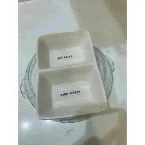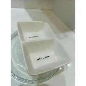 Rae Dunn SET GOALS TAKE ACTION Divided Serving Dish Artisan Magenta 8x5