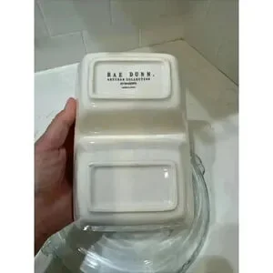 This artisanal divided serving dish by Magenta is a must-have for any farmhouse-style kitchen. With its glossy finish and Rae Dunn pattern, it adds a touch of American charm to any dining table. The dish is made of ceramic and has two compartments, perfect for serving candy, nuts, or other small treats.