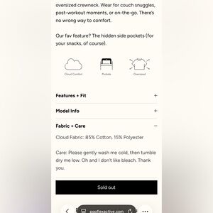 This black crewneck sweater is in good condition. It was only worn about 3 to 4 times. It has normal signs of wear since it has been washed a few times. However, there are no holes or rips. The sweater does attract some lint, so just be mindful of that. It’s a size small/medium and is meant to have a baggy, cozy fit. It also has two side pockets that are big enough to hold an iPhone 14. The inside is a soft material and this sweater will definitely keep you warm in the fall and winter months.