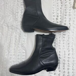 BRAND NEW - NEVER BEEN WORN! Sleek and modern, these western-inspired ankle boots come in supple leather with an elongated square toe, stretchy back panel and a walkable stacked heel. And, cushiness alert, our MWL Cloudlift Lite padding feels like walking on a...well, you know.