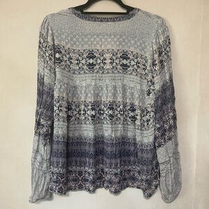 Lucky Brand EUC mixed print peasant boho cottage baby doll blouse size M