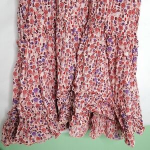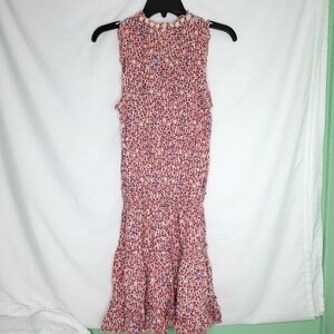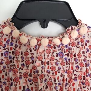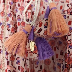 Beautiful floral print Sleeveless dress. V-neck with tassel ties. Pom poms around neckline..Drawstring waist with tassel ties. Perfect resort or holiday cruise dress. Minimal wear.