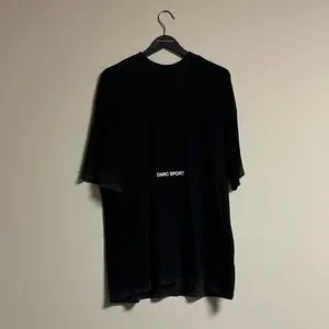 Sleek black tee with subtle branding on front and extravagant design on back. Ideal for gym outings. Soft and comfortable fabric.