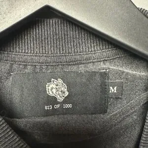 Has some vintage fading around neck, arms and bottom of shirt normal for the material.