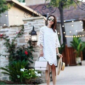 Ann Taylor Scallop Eyelet Shift Dress White Size 6
