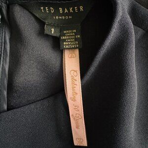 Ted Baker Long Sleeve Belted Floral Embroidered Dress Navy