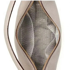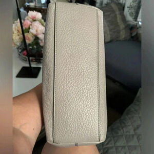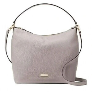 Kate Spade Kaia Prospectplace in Cityscape gray This Kate Spade shoulder bag features a main zip top pocket, an interior zip pocket, and two interior wall pockets; a leather handle with a 6.7” drop, and an adjustable/removable leather shoulder strap with a 20” drop. Dimensions: 12.7 x 11.7 x 4.5.